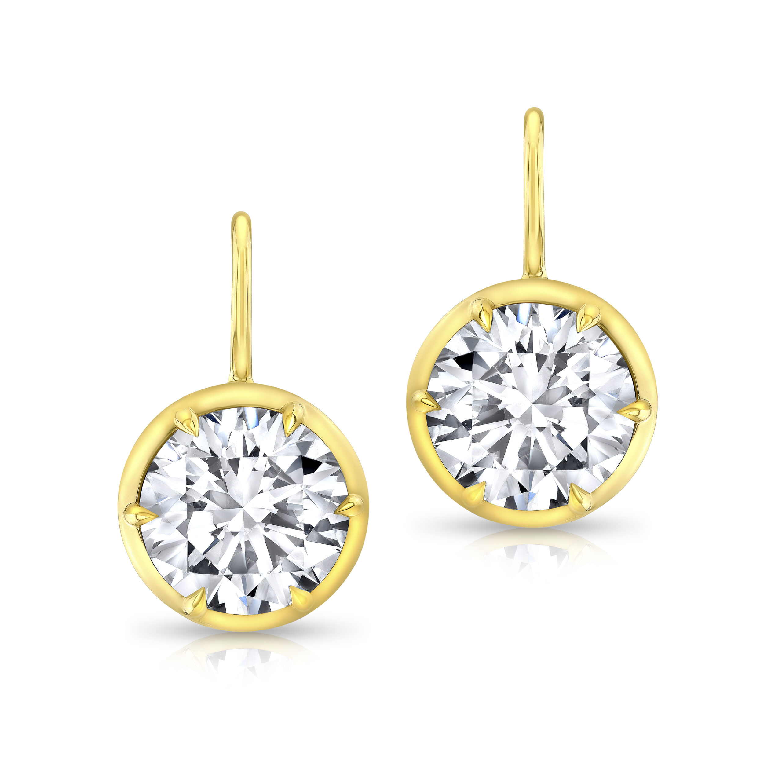 Featured is a pair of Rahaminov 18K Yellow Gold Diamond Dangle Earrings. The total Diamond weight of these stunning earrings is 6.00ct with 2 round diamonds. Try on and enjoy these earrings at our Yamron Jewelers Boutique located at the Waterside Shops in Naples, FL ->